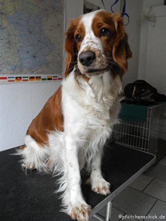 Brixi wurde in Vorbereitung auf die internationale Rassehundeausstellung in Dresden schick gemacht.