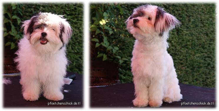 Fibi litt unter ihrem dicken und langem Pelz. Auf Wunsch von Frauchen und Herrchen habe ich sie beschnitten. Selten erlebt man so einen lieben Trimmhund. Die kleine Maus hat alles geduldig "ertragen".