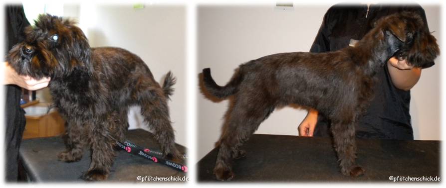 Pebbles, die 6 Monate alte Zwergschnauzerhündin wurde nach Rassestandard getrimmt.